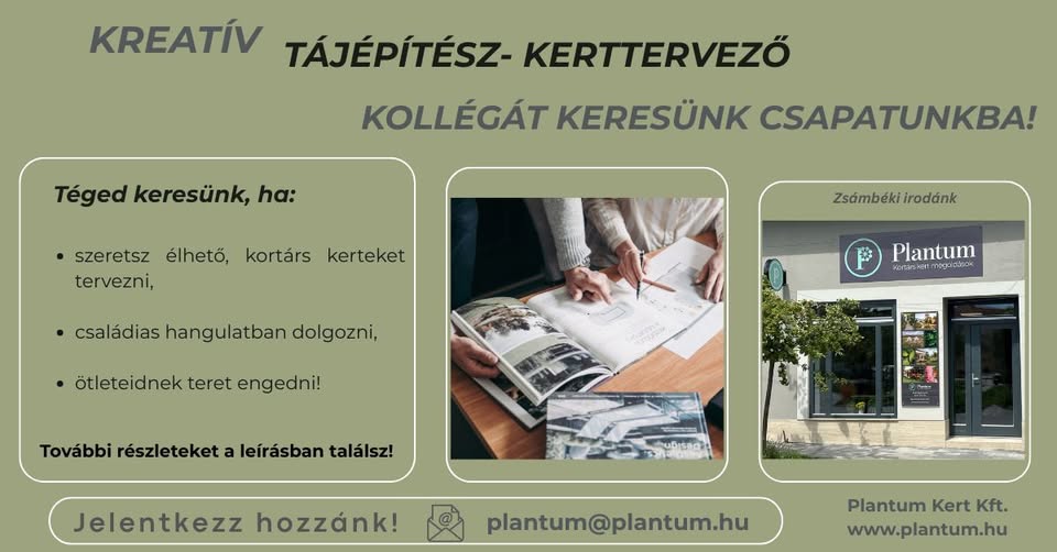 A Plantum Kert Kft. csapata kreatív tájépítész – kerttervező kollégát keres prémium, élhető, kortárs kertek megálmodására.